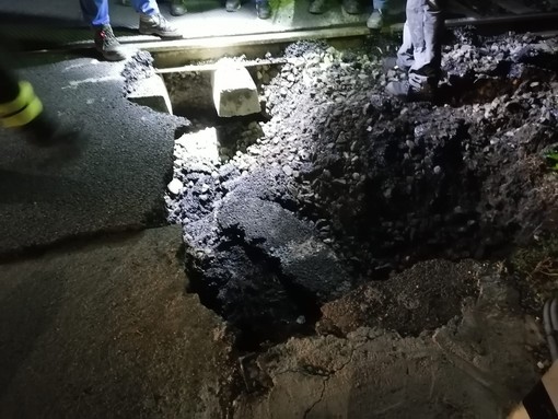 Sul posto sono intervenuti i vigili del fuoco: sembra che un tratto del manto stradale sia ceduto nei pressi dell’intersezione a raso.