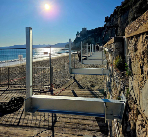 Comincia a delinearsi una delle opere più attese - e nei giorni scorsi anche tra i più chiacchierati - sul fronte della viabilità pedonale nel levante finalese. Sono infatti state installate le prime assi in metallo rialzate e ancorate al muro sottostante l'Aurelia della nuova passerella pedonale nel tratto Castelletto-Capo San Donato.
