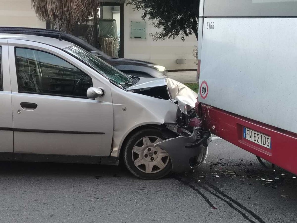 Un'auto ha tamponato un'autobus di Tpl Linea della linea 6 alle Fornaci e il traffico è andato completamente in tilt.