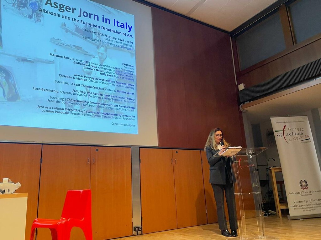 Il 17 febbraio 2026, con l’evento Asger Jorn in Italy – Albisola and the European Dimension of Art, l’Istituto Italiano di Cultura di Copenaghen ha inaugurato un nuovo capitolo della collaborazione tra istituzioni italiane e danesi, accogliendo nei propri spazi l’opera Senza Titolo (1971), realizzata da Asger Jorn ad Albissola e oggi di proprietà del Museum Jorn di Silkeborg.