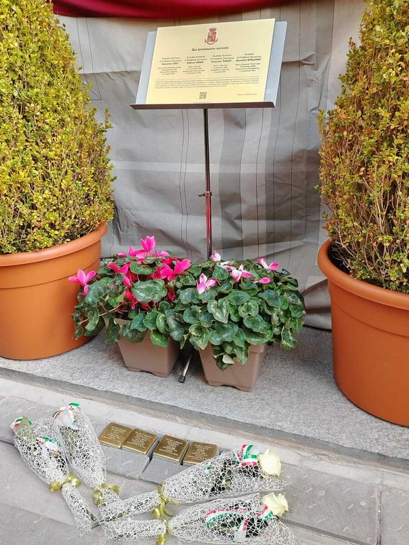 Questa mattina nella Piazza del Duomo è stato ricordato il sacrificio delle Guardie Ausiliarie Salvatore Caci, Stefano Rossi, Giacomo Turco e Giovanni Vitaliano, con la posa delle pietre di inciampo in loro memoria.