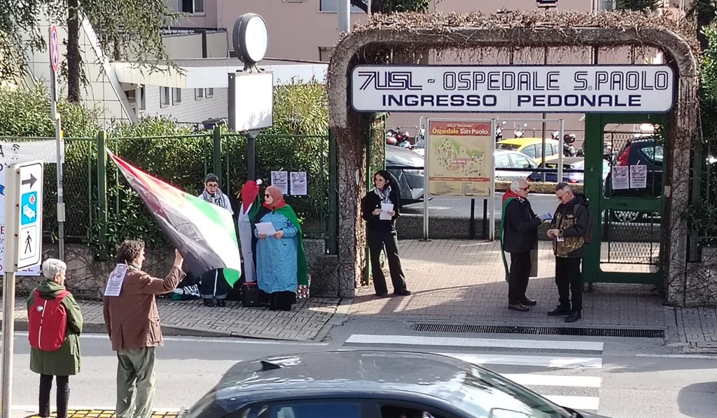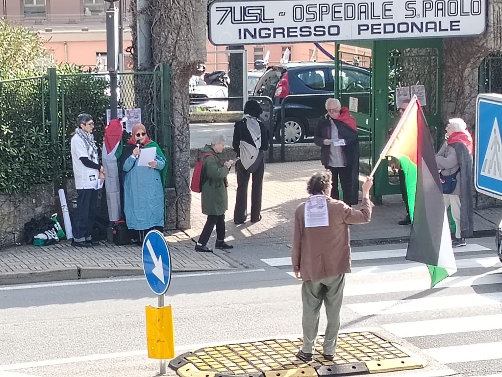 Queste alcune delle frasi impresse sugli striscioni posizionati all'ingresso dell'ospedale San Paolo di Savona in occasione del flash mob nazionale di protesta organizzati anche davanti a una sessantina di altri nosocomi, promossa da “Sanitari per Gaza” e “Digiuno Gaza” sotto lo slogan “No liste, no bersagli. Cura e solidarietà non sono reato”.