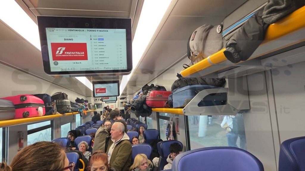 Tanti passeggeri sono rimasti in piedi e, con la salita di nuovi viaggiatori da Imperia a Savona, il convoglio è diventato una scatola di sardine, da pensare più ad un bus nell’ora di punta, piuttosto che un treno che copre una tratta media, in una giornata particolare, come quella della fine del Festival di Sanremo.