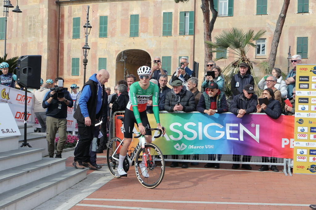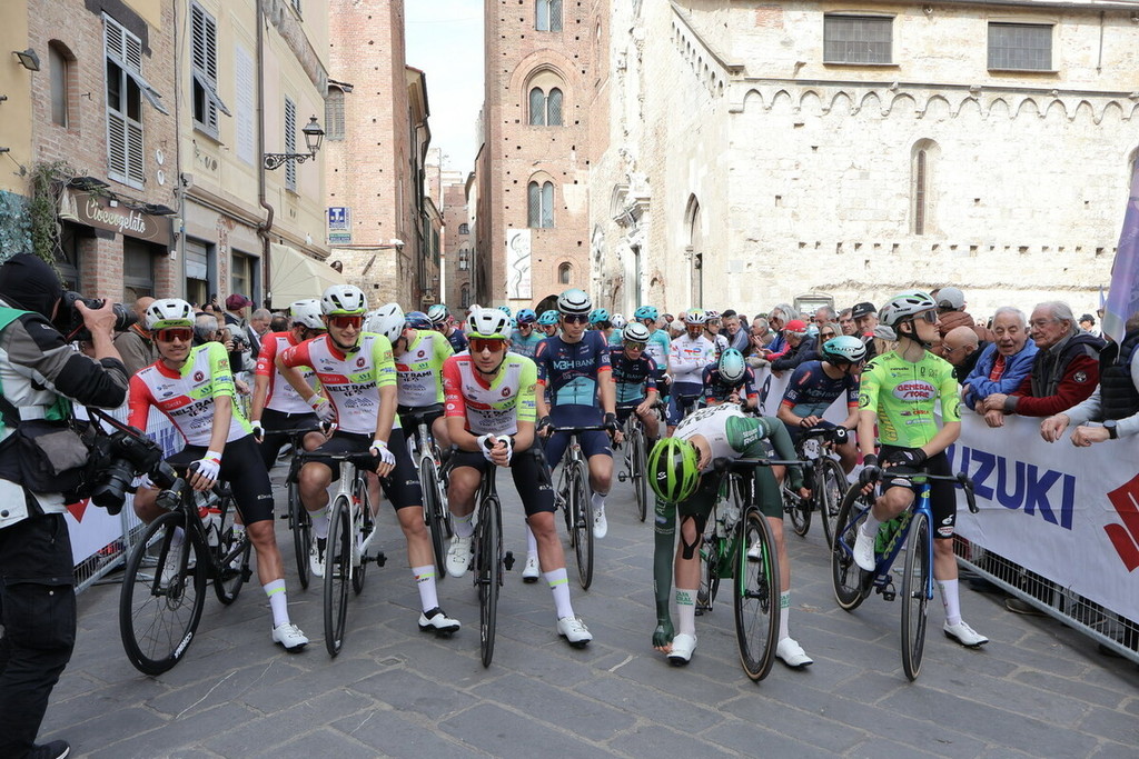 Dopo la presentazione ufficiale delle squadre in piazza del Popolo, la partenza ufficiosa (con trasferimento turistico) è andata in scena da via Enrico d’Aste, accanto a piazza San Michele. Da lì i corridori hanno raggiunto piazza del Popolo per poi attraversare l’iconico Ponte Viveri, noto come “ponte rosso”, proseguendo lungo via Piave e la via Aurelia, sede della partenza ufficiale.