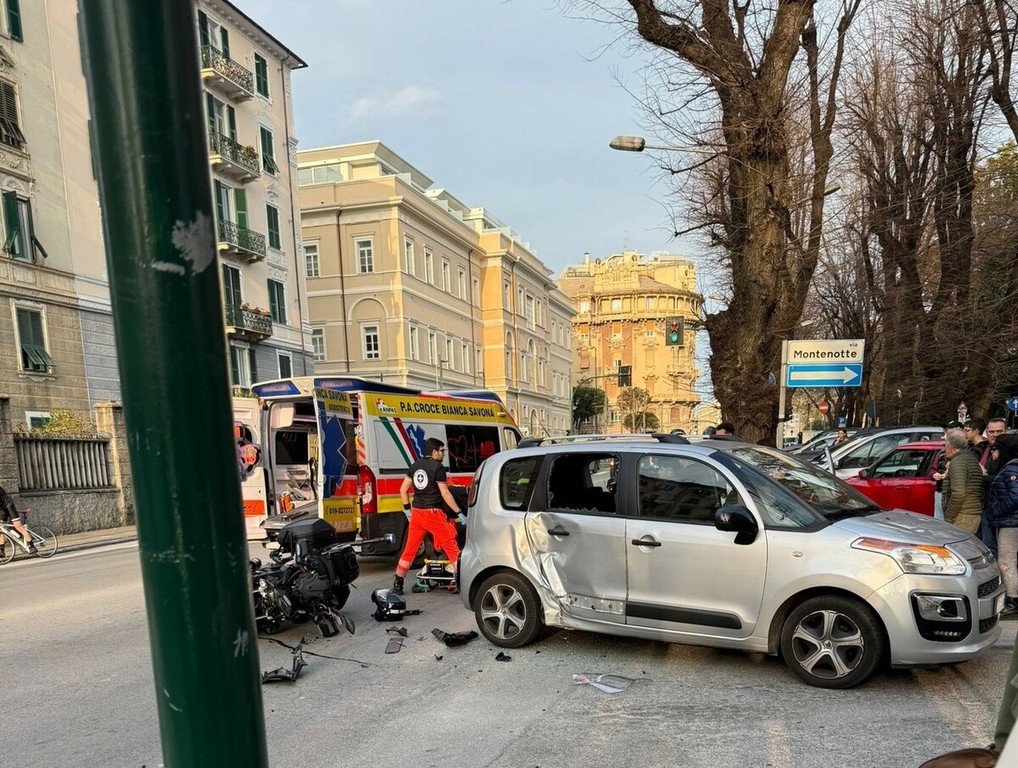 Incidente tra un'auto e una motocicletta dei Carabinieri. Lo scontro è avvenuto nell'incrocio tra via Montenotte e Corso Mazzini. Ancora da accertare le cause e la dinamica dell'incidente.