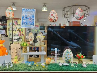 Un gruppo di ceramisti con la collaborazione di Rosanna La Spesa hanno quindi esposto in moltissime vetrine più di 70 uova e delle galline in Ceramica artistiche tutte rigorosamente diverse tra loro.