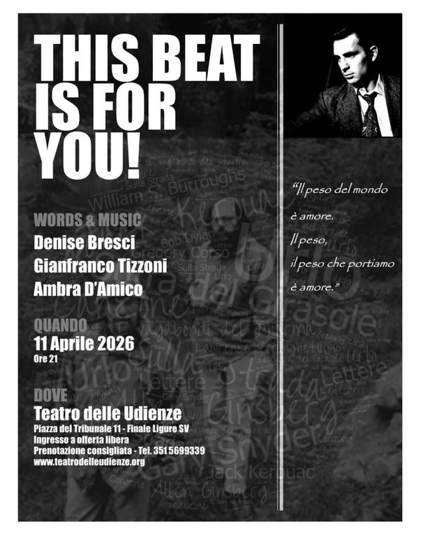 Sabato 11 aprile 2026, alle ore 21, andrà in scena “This Beat is for You!”, un reading–conferenza con Denise Bresci, Gianfranco Tizzoni (voce e chitarra) e Ambra D’Amico, cantante, attrice e formatrice, tra le principali esperte italiane della voce e della parola scenica, con una lunga esperienza didattica nelle più importanti accademie teatrali nazionali.