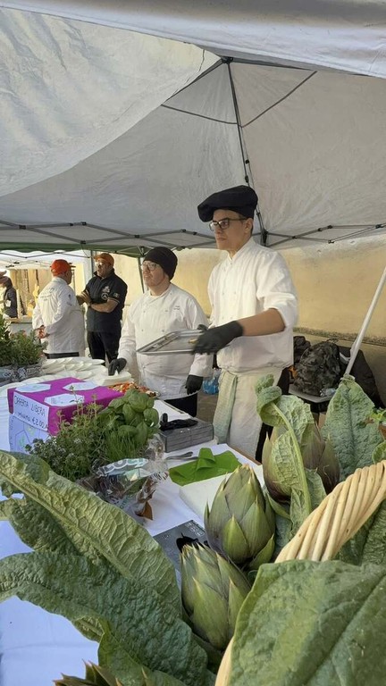 Particolarmente significativa la presenza dell’Istituto Alberghiero, che ha realizzato uno showcooking dedicato al carciofo spinoso, offrendo al pubblico una degustazione di piatti preparati dagli studenti. Accanto a loro, anche l’Istituto Agrario ha partecipato con uno stand di prodotti coltivati dagli stessi ragazzi, testimoniando il valore educativo e formativo della filiera agricola locale.