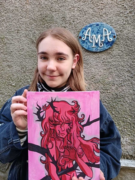 A soli 14 anni, Emma Kuka, studentessa della 3ª A della scuola media di Altare, trasforma la passione per il fumetto in arte su tela.