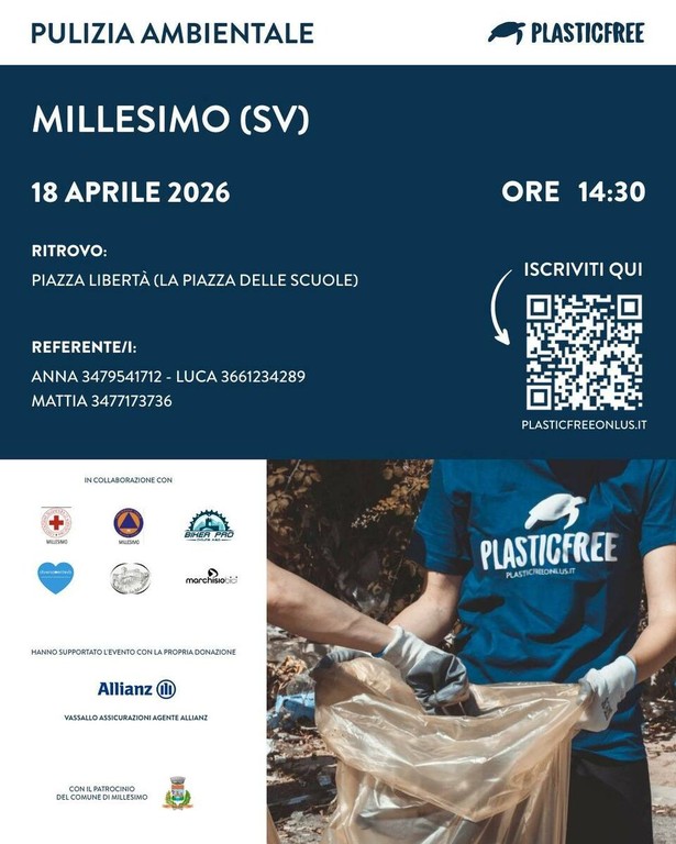 Per partecipare è possibile iscriversi in anticipo tramite il QR code sulla locandina o cliccando sul link: Plastic Free Millesimo.