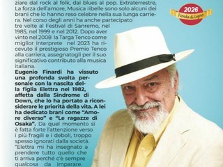 A consegnare il premio sarà Antonio Ricci, ideatore di Striscia la Notizia e figura storicamente legata alla manifestazione. Con loro, sul palco, anche un ospite musicale di primo piano, Eugenio Finardi, invitato per la sensibilità dimostrata negli anni verso i temi al centro dell’edizione 2026 del premio. Finardi, protagonista della musica italiana con brani come Extraterrestre, La forza dell’amore e Musica ribelle, ha intrecciato la propria esperienza artistica con una vicenda personale che ha inciso profondamente sul suo percorso: la nascita della figlia Elettra, affetta da sindrome di Down, a cui ha dedicato canzoni come Amore diverso e Le ragazze di Osaka. Un’esperienza che ha rafforzato il suo impegno verso le fragilità sociali, spesso marginalizzate.