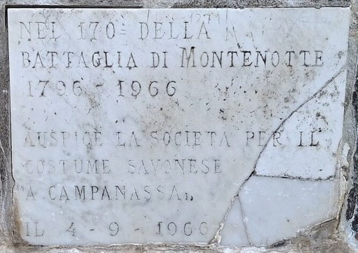 La Delegazione della “A Campanassa” si è recata poi presso il cippo napoleonico del Bric Cascinasso, dove una seconda epigrafe (posta 60 anni or sono dalla “A Campanassa” stessa) ricorda la seconda battaglia, quella di Montenotte, combattuta tra quei monti il 12 aprile 1796.