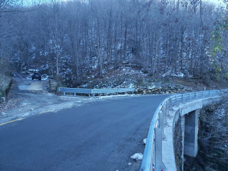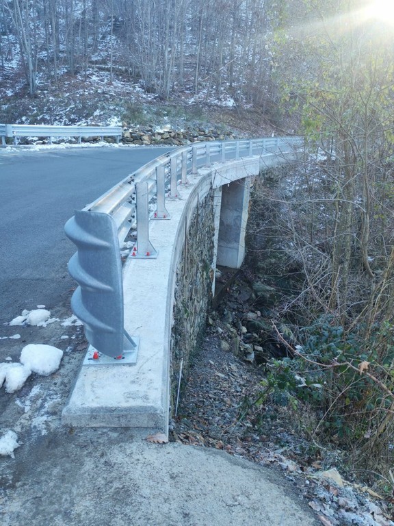A completamento, sono state installate barriere stradali lungo i margini del ponte e nei tratti immediatamente adiacenti, integrate da cordoli laterali.
