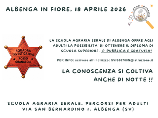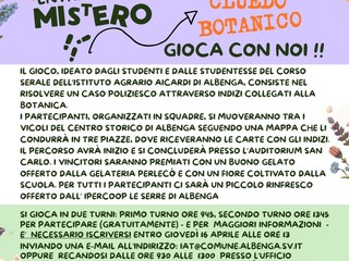 Sabato 18 aprile 2026, nell’ambito di “Fior d’Albenga”, il percorso serale dell’ Istituto agrario d'Istruzione Secondario Superiore Giancardi Galilei Aicardi propone il “Cluedo Botanico”, un originale gioco investigativo aperto a tutta la cittadinanza.