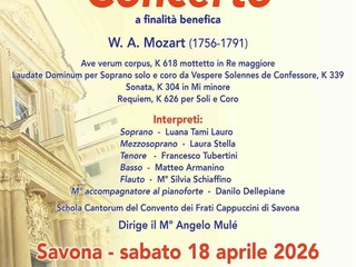 Sabato 18 aprile alle ore 20:45 nella Chiesa Sant'Andrea Apostolo, in piazza dei Consoli del Comune, si terrà un concerto benefico a sostegno della costruzione di una sala operatoria per il reparto Maternità presso una missione delle Figlie di Nostra Signora della Misericordia in un villaggio nella Repubblica Centrafricana. Il progetto dell'associazione Savona nel Cuore dell'Africa è finalizzato ad evitare pericolosi trasferimenti delle donne in strutture sanitarie molto distanti.