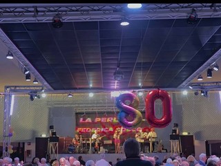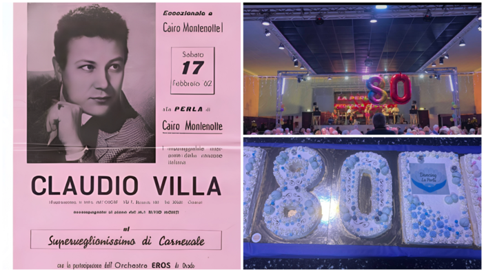 Giovedì sera il Dancing La Perla di Cairo Montenotte ha festeggiato i suoi 80 anni di attività con una serata speciale all’insegna della musica e della convivialità. Sul palco si sono alternati gli ospiti della serata — Federica Cocco, Matteo Bensi, Walter e Antonella Marchini, accompagnati dall’Orchestra I Caravel — che hanno animato la festa davanti a un pubblico numeroso. Un brindisi e una fetta di torta offerti a tutti i presenti hanno segnato simbolicamente l’anniversario di uno dei locali storici del territorio.