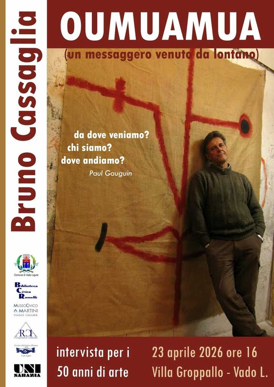 In occasione dei suoi 50 anni di attività artistica, l’artista Bruno Cassaglia sarà protagonista di un incontro pubblico dal titolo “Oumuamua – un messaggero venuto da lontano”, in programma giovedì 23 aprile 2026 alle ore 16 presso Villa Groppallo a Vado Ligure.