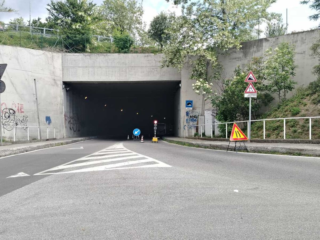 Scattano i lavori di riqualificazione energetica ed è stato posizionato il senso unico alternato nella galleria tra via Tissoni e via alla Rocca.