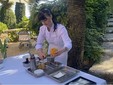 Ai Giardini della Pergola, tutto questo sapere si è tradotto in esperienza sensoriale a 360 gradi. Il pubblico ha osservato, annusato, toccato. I fiori diventano “racconti liquidi”: il naso anticipa, il palato conferma, la memoria trattiene. È un’esperienza totalizzante, dove anche il colore — tenue o vibrante — contribuisce alla narrazione.