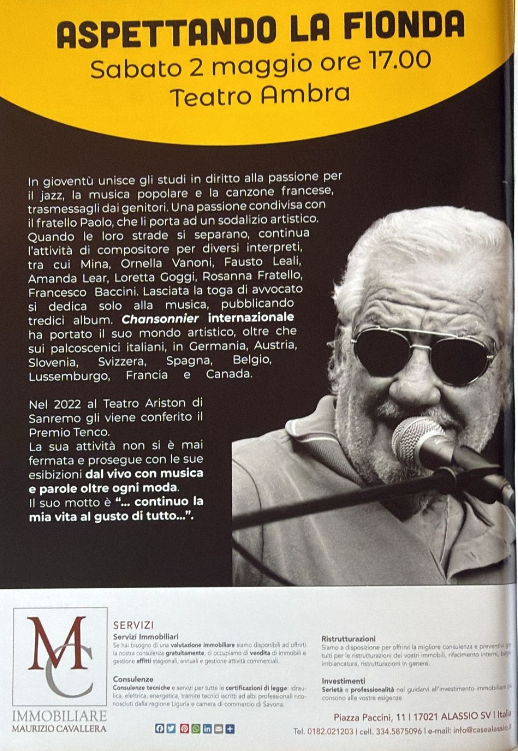 • “Aspettando la Fionda di legno” – concerto. Ore 17.00 al Cinema Teatro Ambra, a cura dell’associazione culturale Fieui di caruggi