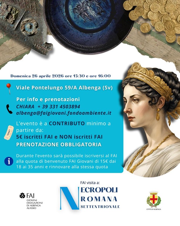 • Visita guidata a pagamento nel Centro storico. Orario 16.30, ritrovo presso lo IAT – Torre Civica. Prenotazioni: turismo@comune.albenga.sv.it – guideliguria@gmail.com
