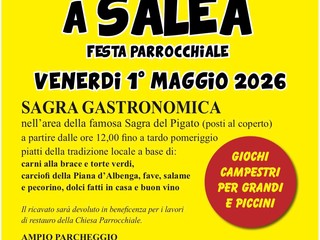 • 1° maggio a Salea. Tutto il giorno in Frazione Salea – area Sagralea, a cura della Parrocchia San Giacomo Maggiore