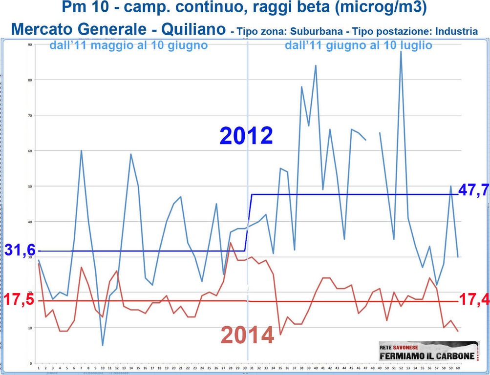 Affermano i rappresentanti della "Rete savonese fermiamo il carbone" : "Ecco i grafici che dimostrano inequivocabilmente come dal 2012 al 2014 si sia verificato un netto miglioramento della qualità dell’aria.