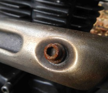 La vite di una moto coperta di ruggine dopo mezza giornata di pioggia a Savona