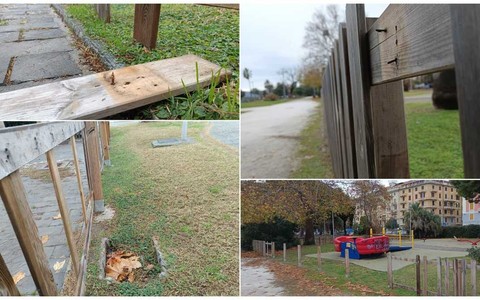 Savona, giardini del Prolungamento nel degrado: staccionate divelte e chiodi ad altezza di bambino (FOTOGALLERY)