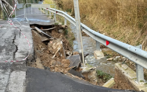 Terra e pietre franano minacciando la carreggiata, scatta il senso unico alternato sulla Sp8 tra Finale e Vezzi Portio