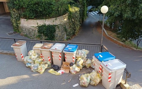 "Spazzatura varia versata davanti ai bidoni condominiali e non ritirata da cinque giorni"