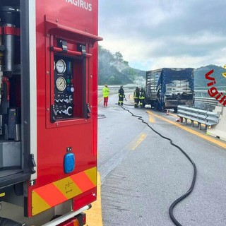Paura in autostrada, furgone che trasportava materiale cartaceo in fiamme lungo la A6: nessun ferito