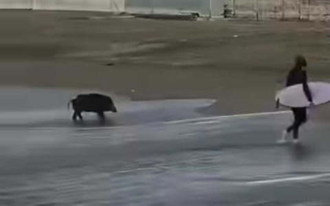"Nuota coi cinghiali", altro che Poseidone: a Varazze arriva l'ungulato con il surfista (VIDEO)