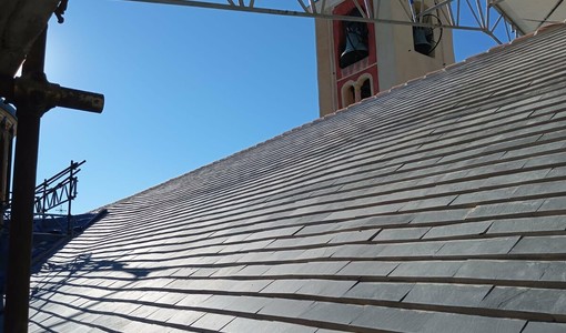 Varigotti, oltre 300 le lastre in ardesia "adottate" per il rifacimento del tetto della chiesa di San Lorenzo