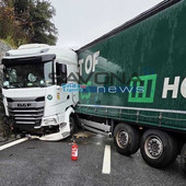 A10, tir perde il controllo e sbatte contro un altro mezzo pesante fermo in piazzola: incidente tra Varazze e Arenzano